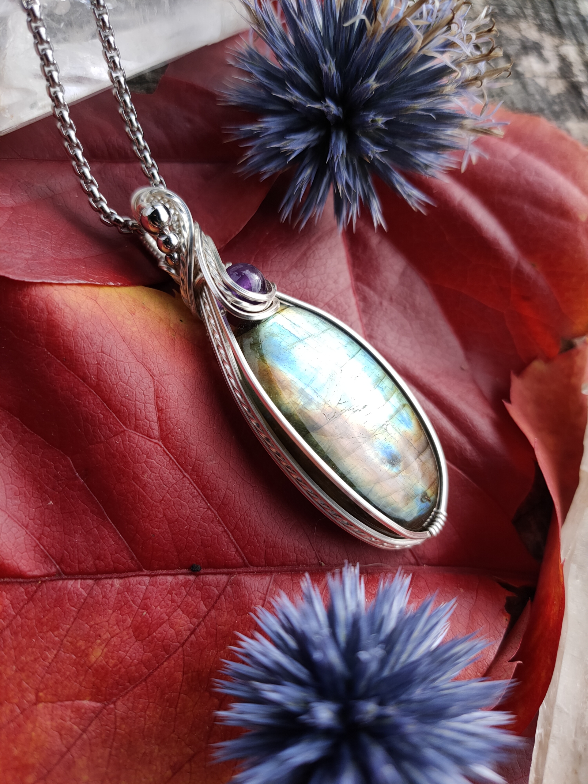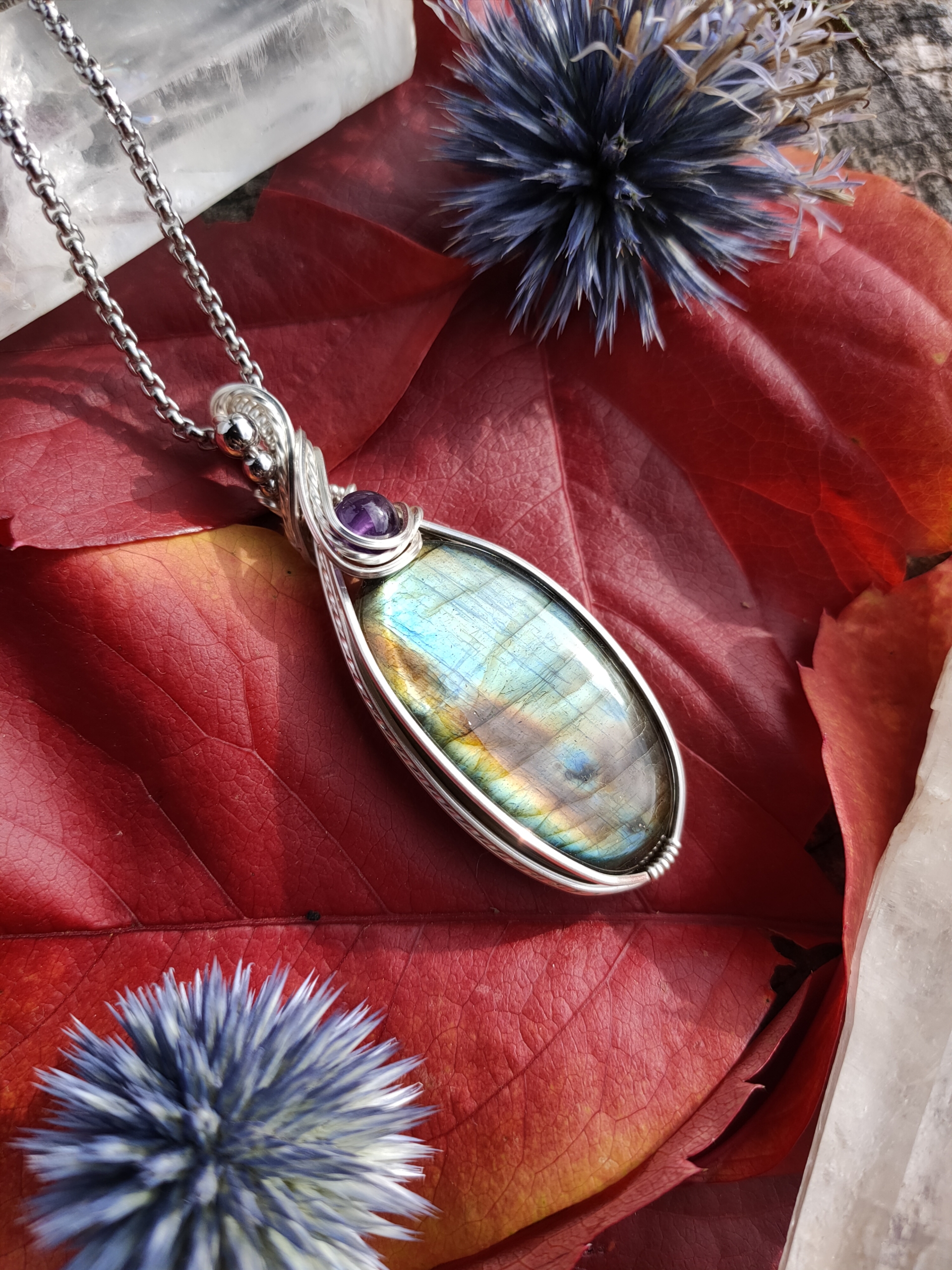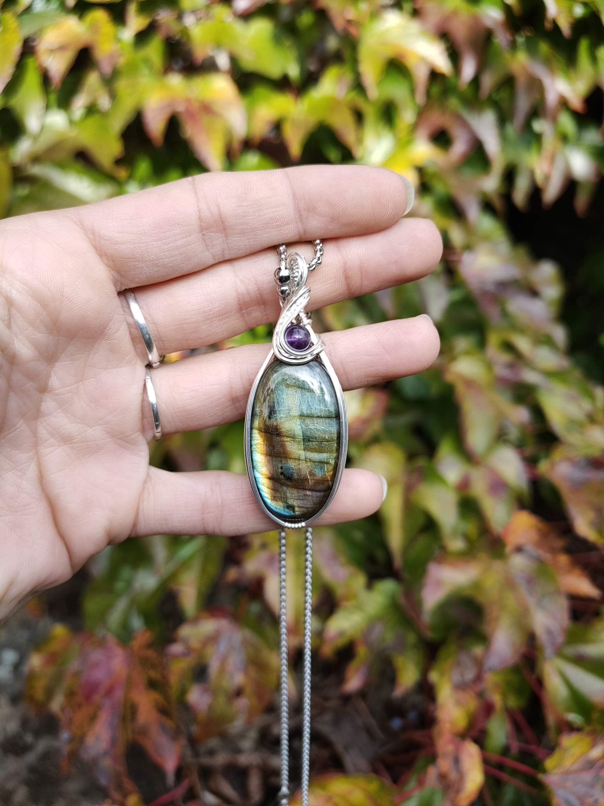 « Je suis ravie de mon pendentif labradorite arrivé hier dans ma boîte aux lettres. C'est une très belle création originale qui va maintenant m'accompagner au fil des jours pour mon plus grand bonheur. »