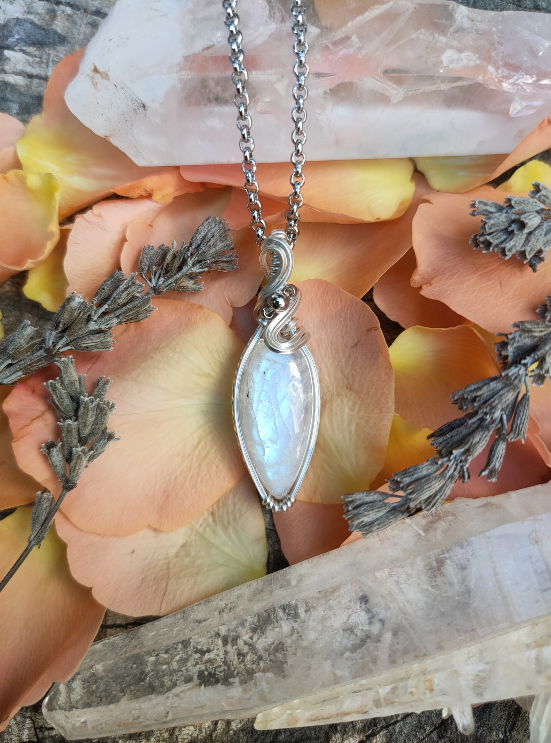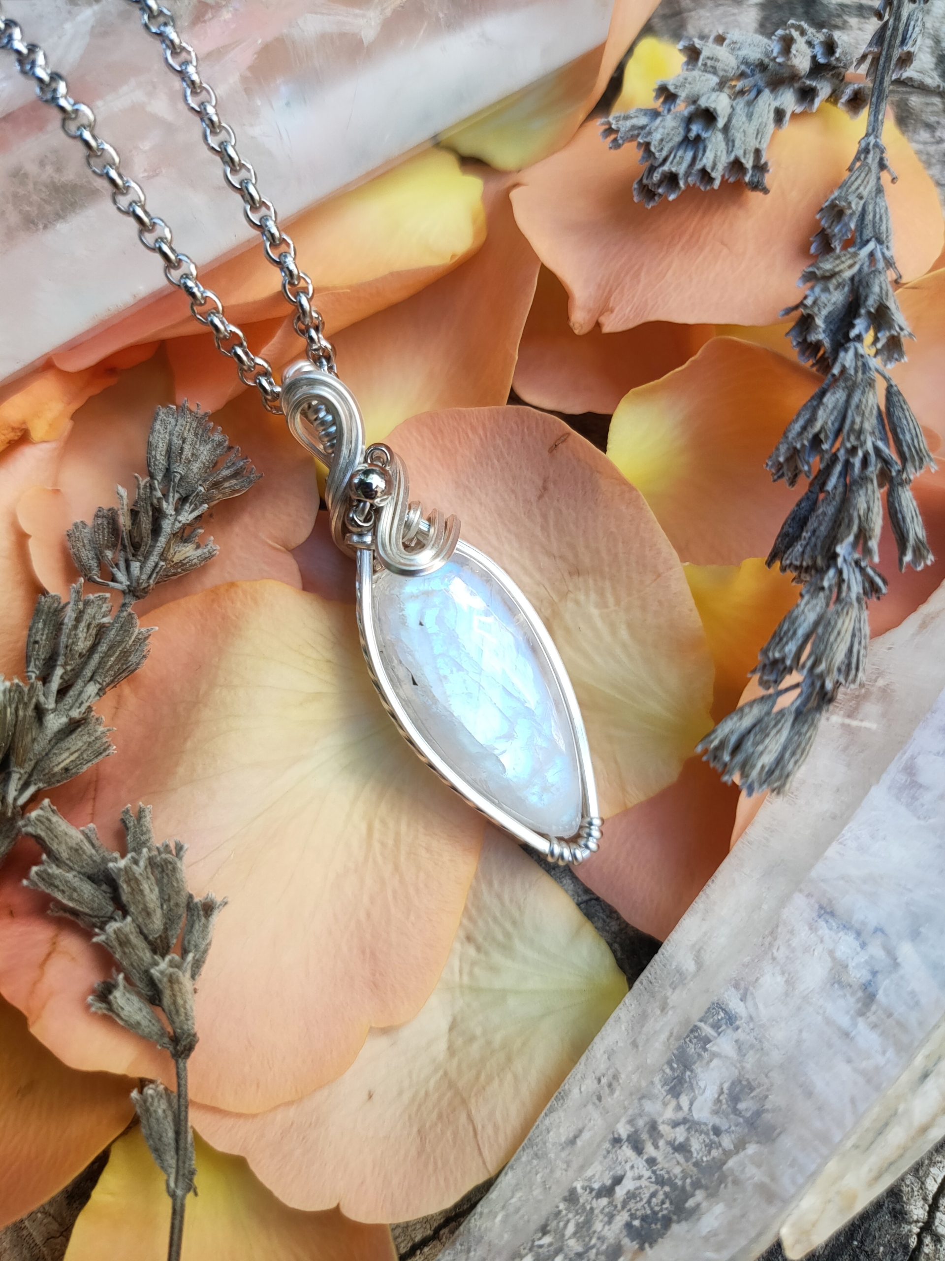 « Je suis ravie de mon pendentif labradorite arrivé hier dans ma boîte aux lettres. C'est une très belle création originale qui va maintenant m'accompagner au fil des jours pour mon plus grand bonheur. »